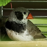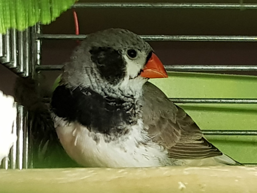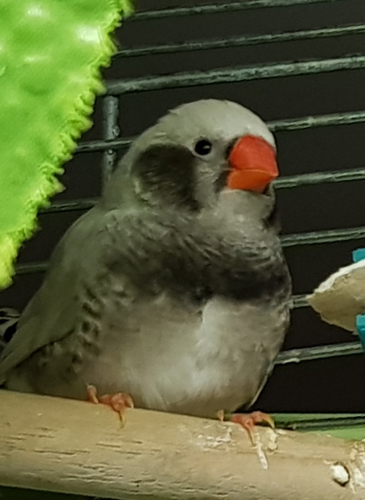 Варвара - крупная чернолицая чернощекая черногрудая (триблэк) серая самка (белое кольцо на правой лапке):