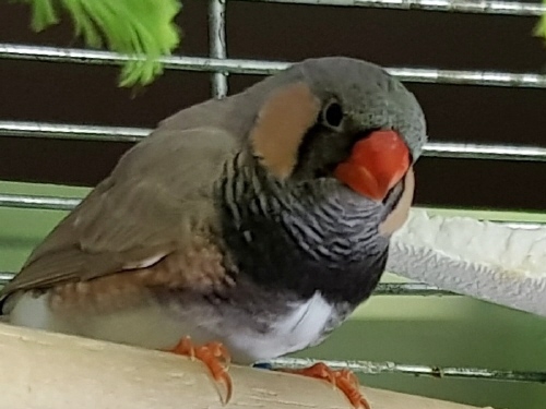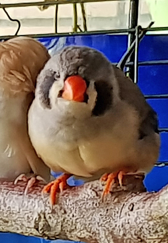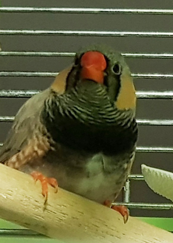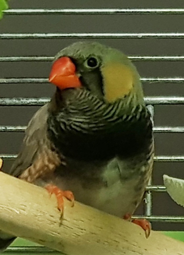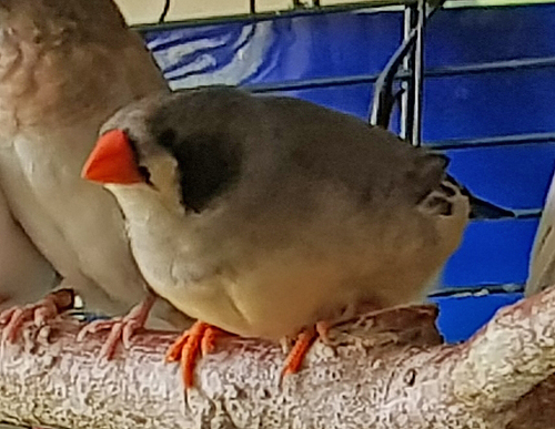 Эсми - крупная чернощекая самка лайтбэк щепная на черногрудых (красное кольцо на левой лапке):