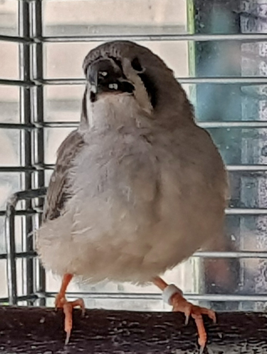 Зарафшан - очень крупная чернощекая серая самка щепная на черногрудых (белое кольцо на левой лапке):