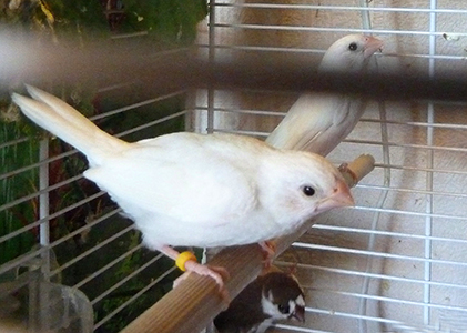 Юки - белая самка (белое кольцо на правой лапке):