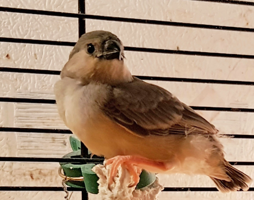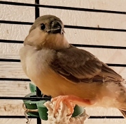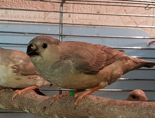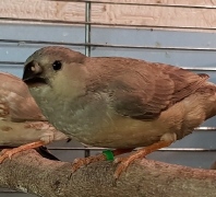 Эрика - крупная чернолицая черногрудая оранжевогрудая серая самка щепная на изабель (зеленое кольцо на правой лапке):