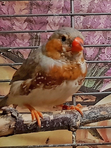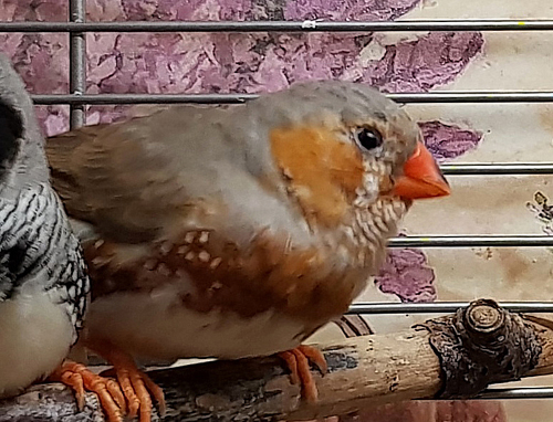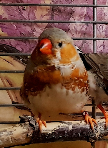Стенли - крупный оранжевогрудый палевый самец щепный на черногрудых и изабель (несъемное кольцо №115 на левой лапке):