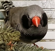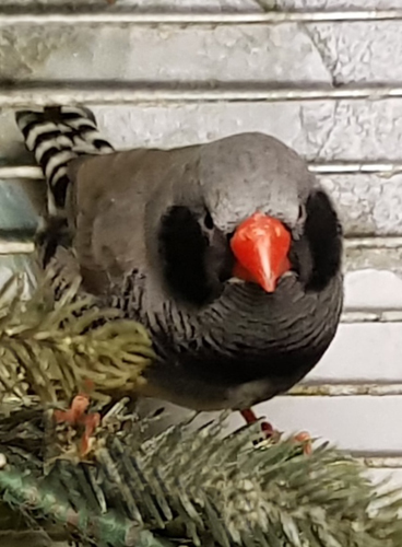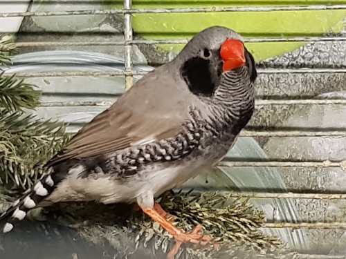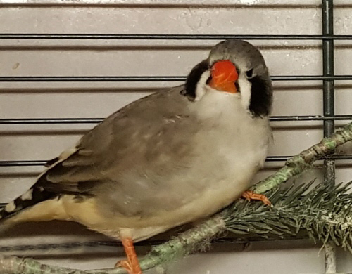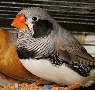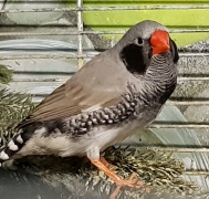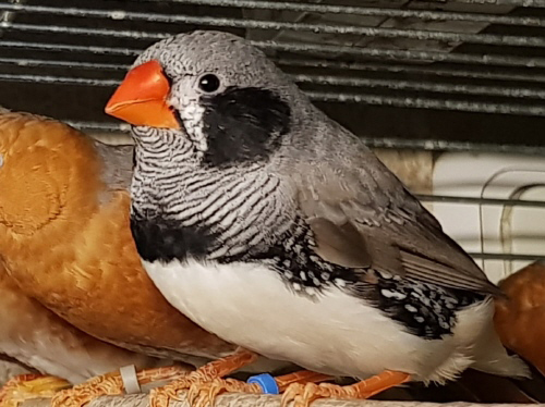 Паллада - крупная чернощекая серая самка щепная на черногрудых (красное кольцо на правой лапке):