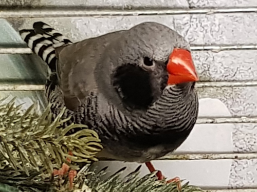 Круз - крупный чернолицый чернощекий серый самец щепный на черногрудых и мармазет (несъемное кольцо №110 на левой лапке):