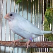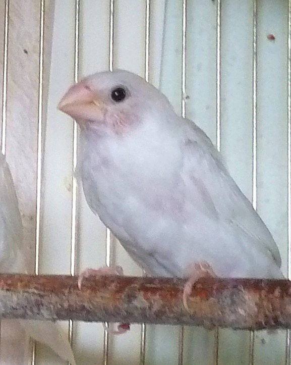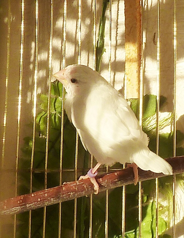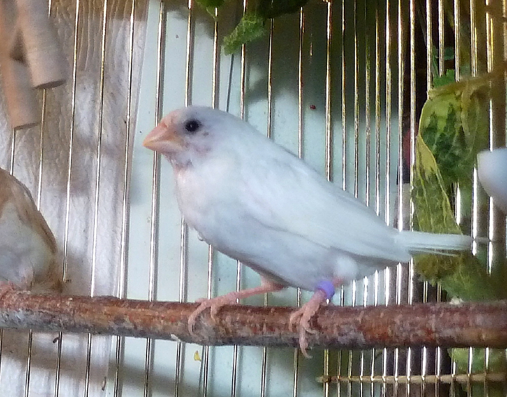 Жизель - белая самка (сиреневое кольцо на левой лапке):