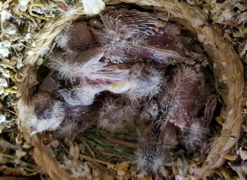 Гнездование №200: Птенцы от пары Элвис и Джоанна, рождение 21.10.18 (5 птенцов)