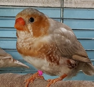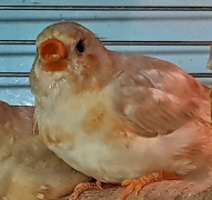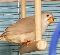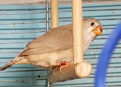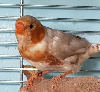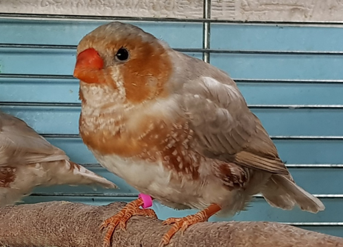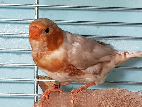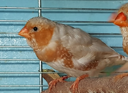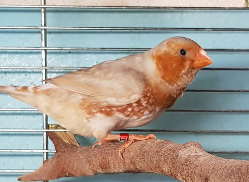 Пинки - очень крупный черногрудый оранжевогрудый палевый самец щепный на лайтбэк и изабель (розовое кольцо на левой лапке):