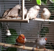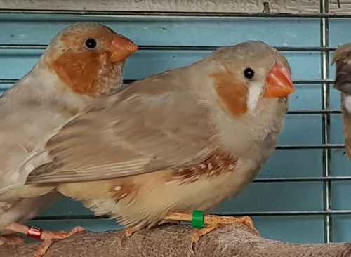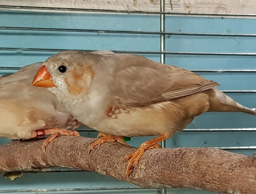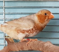 Инди - крупная оранжевогрудая палевая самка щепная на черногрудых и изабель (несъемное кольцо №113 на правой лапке):