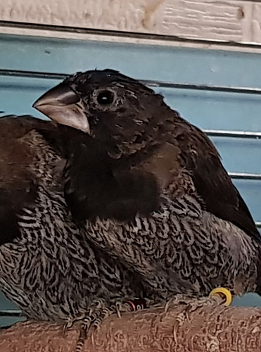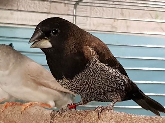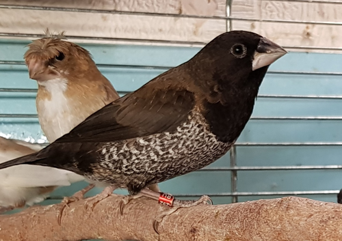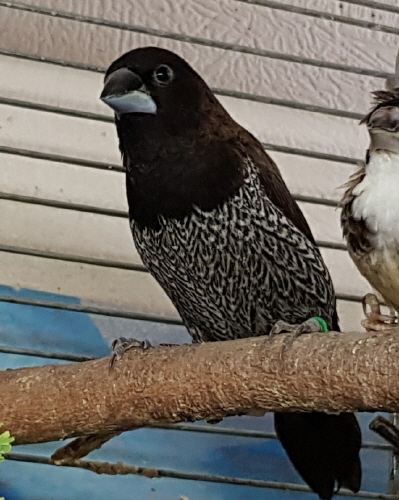 Элтон - крупный черно-коричневый самец щепный на кремино (зеленое кольцо на левой лапке и годовое кольцо №291 на правой лапке):
