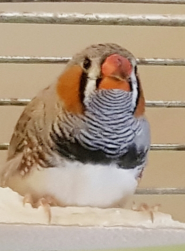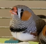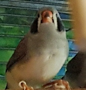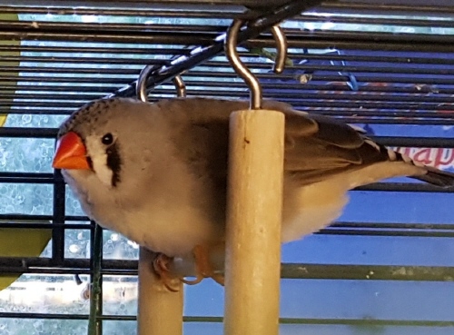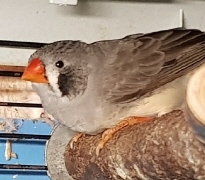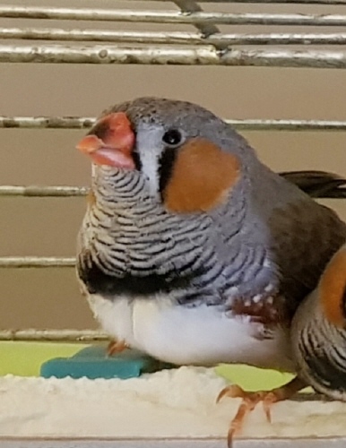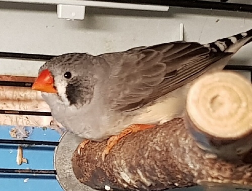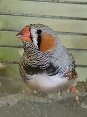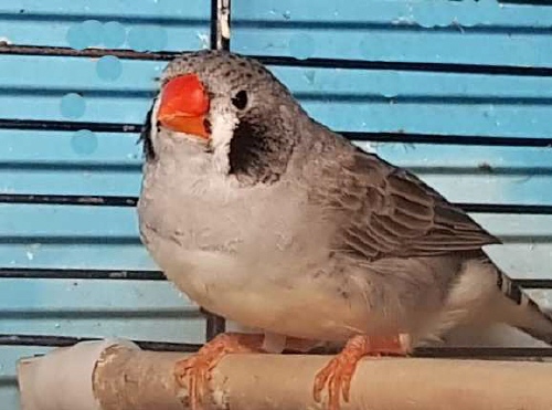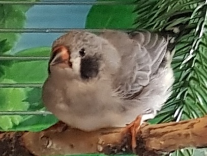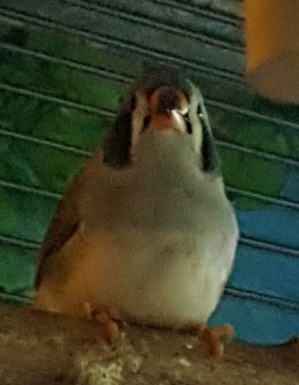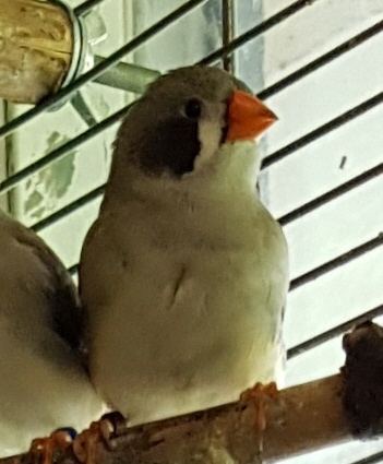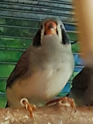 Пэгги - крупная серая самка щепная на чернощеких и черногрудых (голубое кольцо на левой лапке):