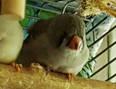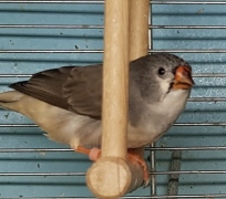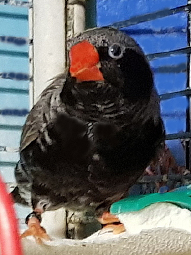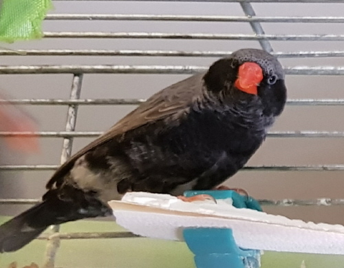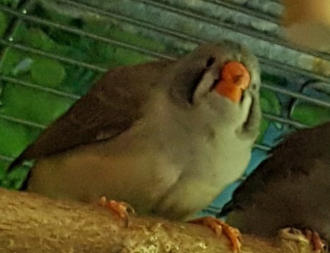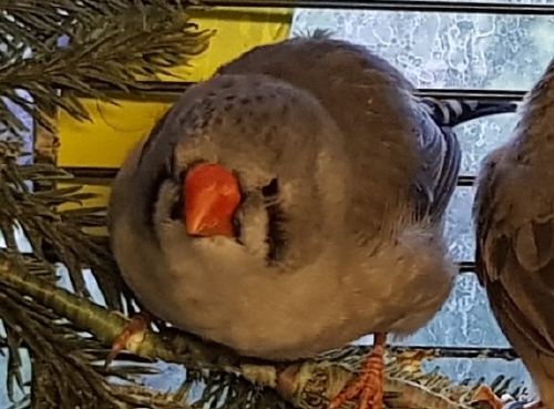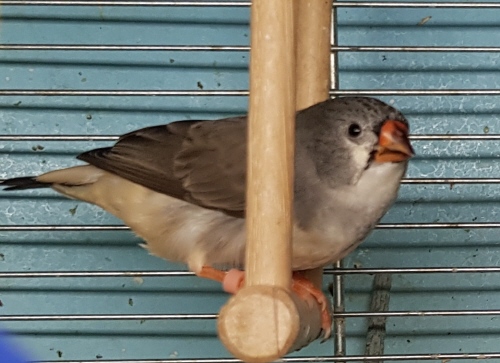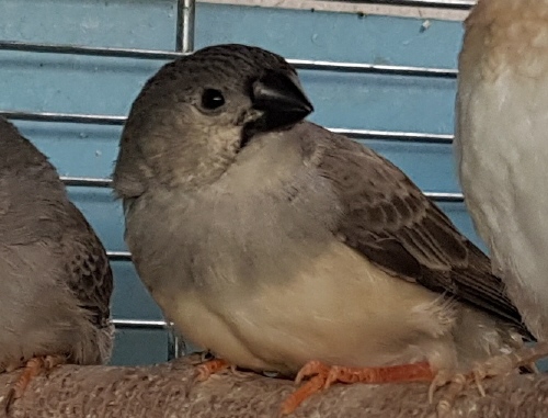 Тинтин - крупная чернощекая черногрудая серая самка (светло-розовое кольцо на правой лапке):