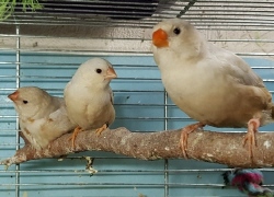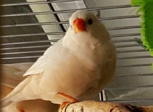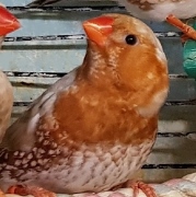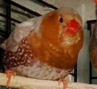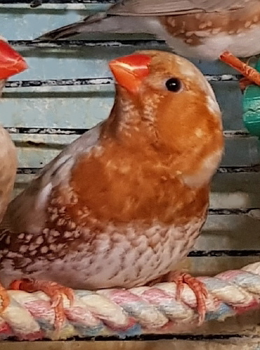 Монпансье - крупная черногрудая оранжевогрудая самка палевый изабель (годовое несъемное кольцо №54 на левой лапке):