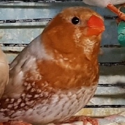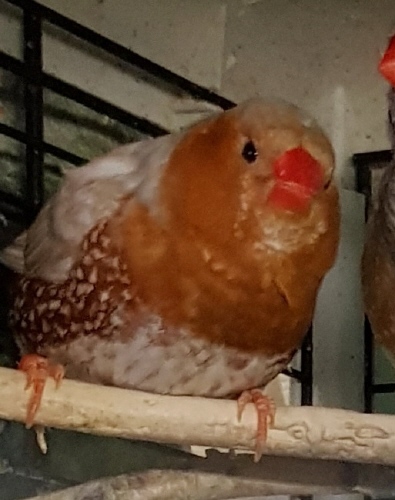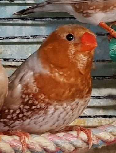 Изюм - крупный черногрудый оранжевогрудый самец изабель (оранжевое кольцо на правой лапке):