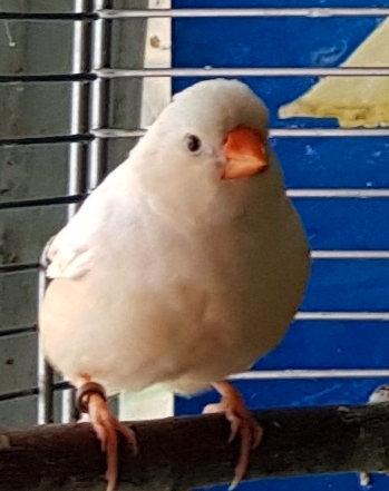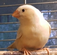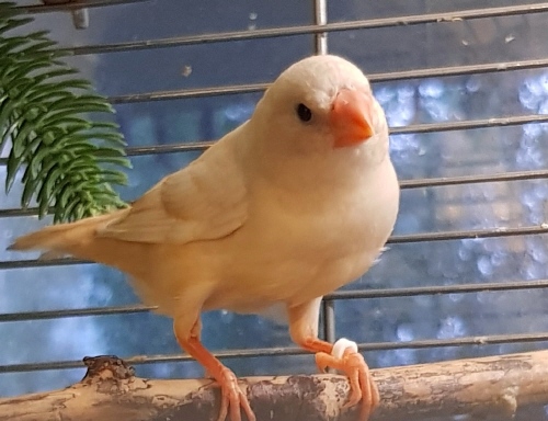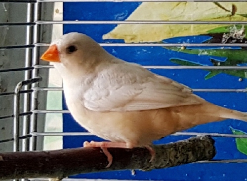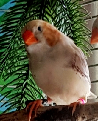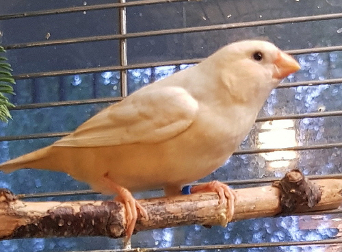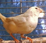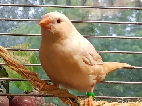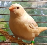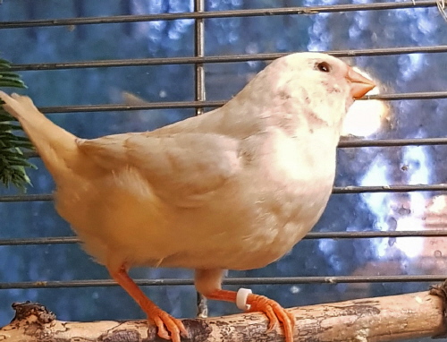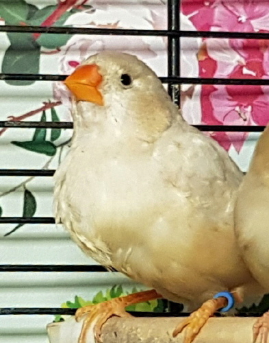 Торт - крупный черногрудый оранжевогрудый самец изабель (годовое кольцо №56 на правой лапке, розовое кольцо на левой лапке):
