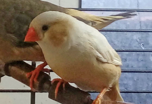 Пэнни - крупная черногрудая оранжевогрудая самка палевый изабель (белое кольцо на левой лапке):