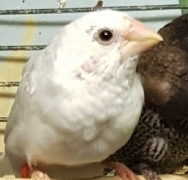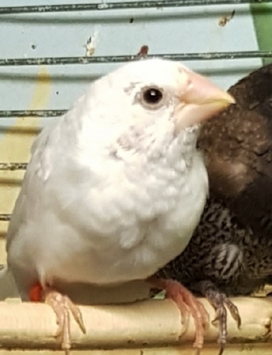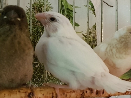 Фил - белый самец (оранжевое кольцо на правой лапке):