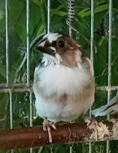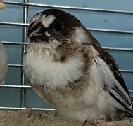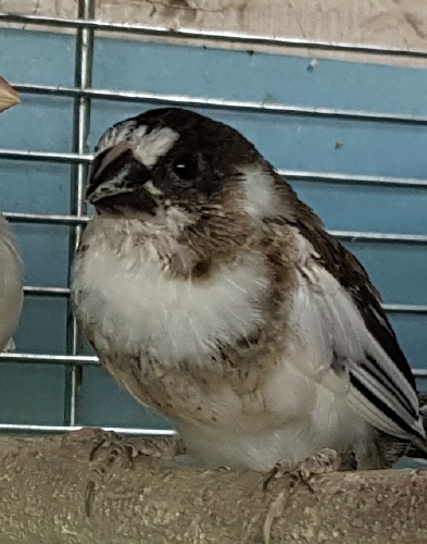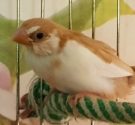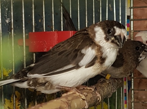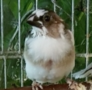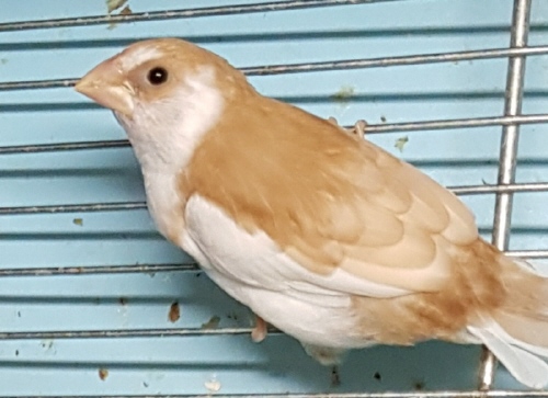 Тина - пестрая бело-палевая самка сэдлбэк (без кольца):