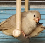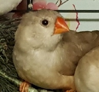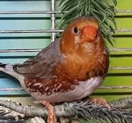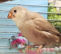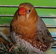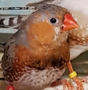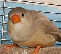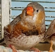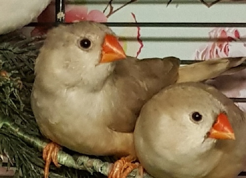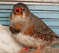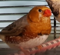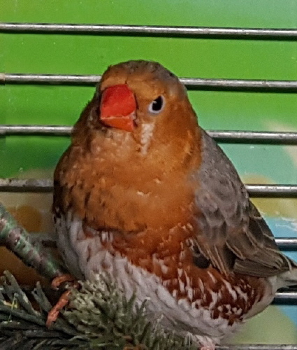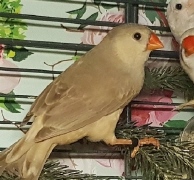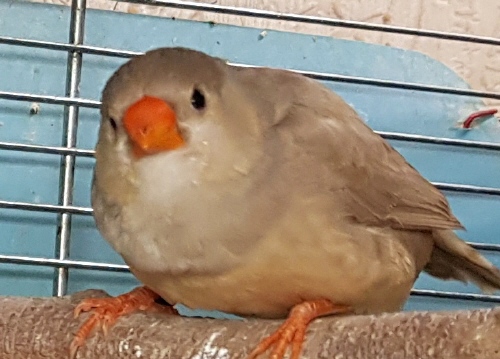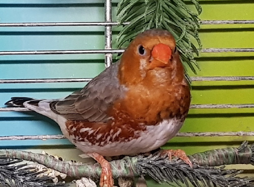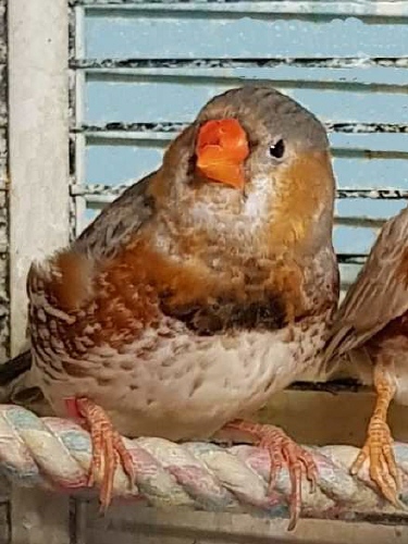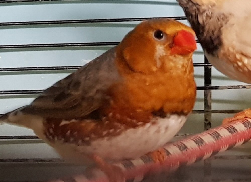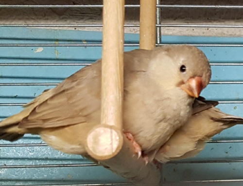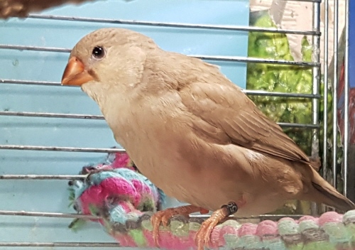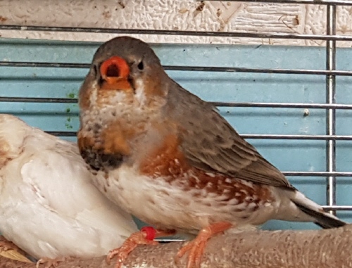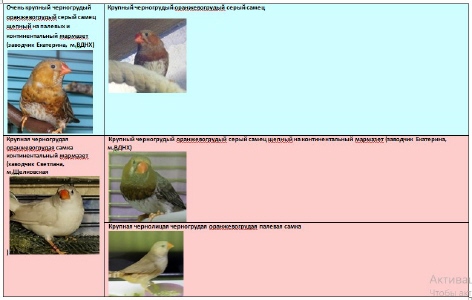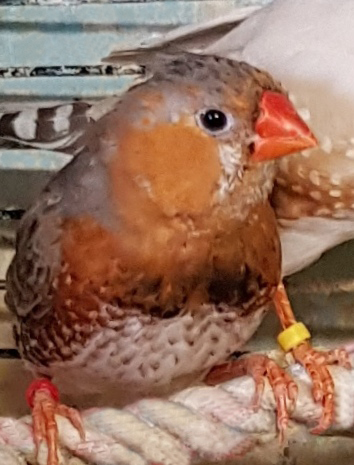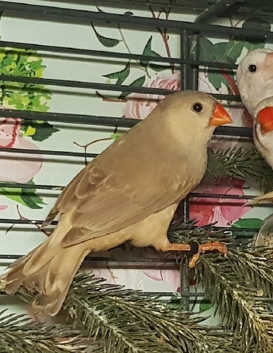 Моника - крупная чернолицая черногрудая оранжевогрудая палевая самка (черное кольцо на правой лапке):
