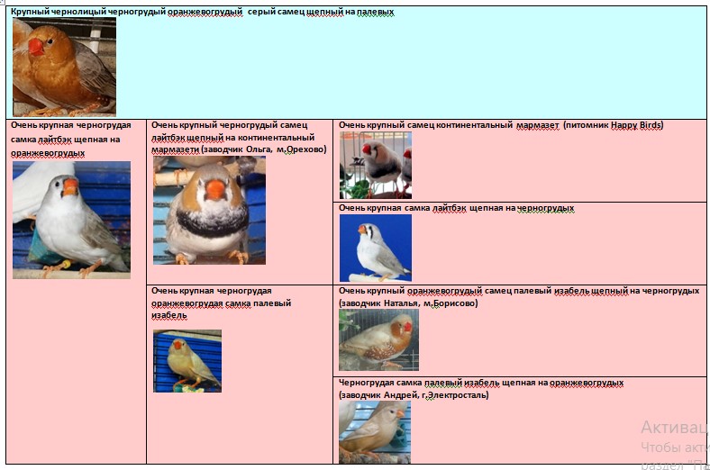 Родословная птенцов: