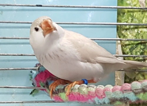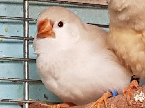 Фаготель - крупная черногрудая чернощекая самка палевый континентальный мармазет (голубое кольцо на правой лапке):