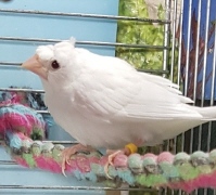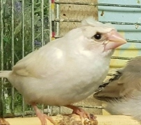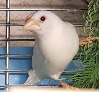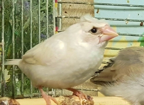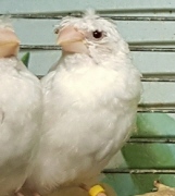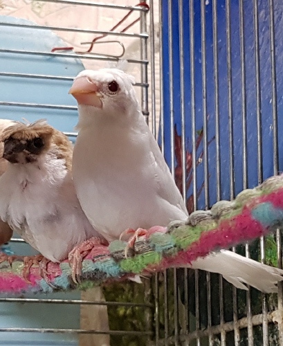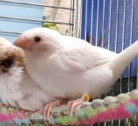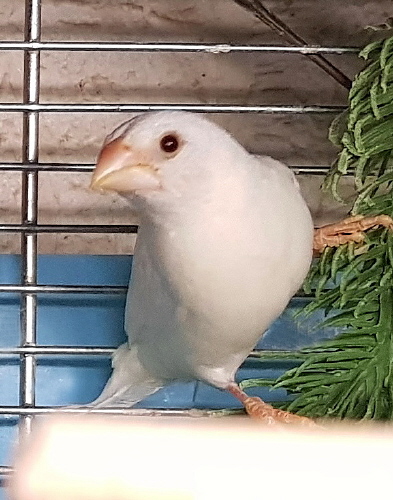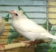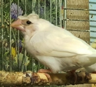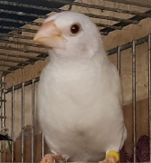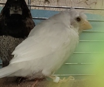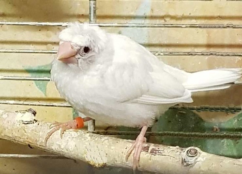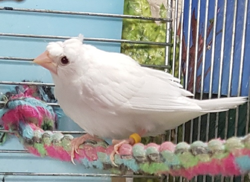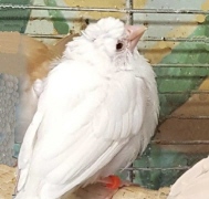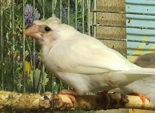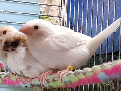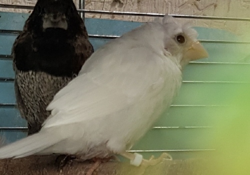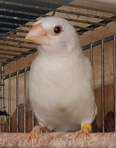 Челси - белый самец (желтое кольцо на правой лапке):