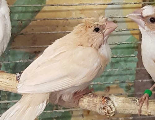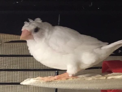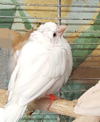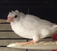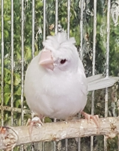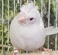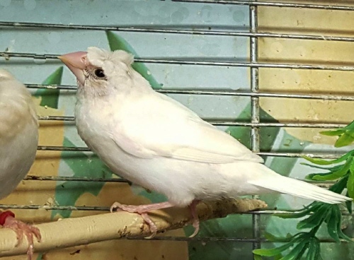 Шуга - хохлатый (2 хохла) белый самец (белое кольцо на правой лапке):