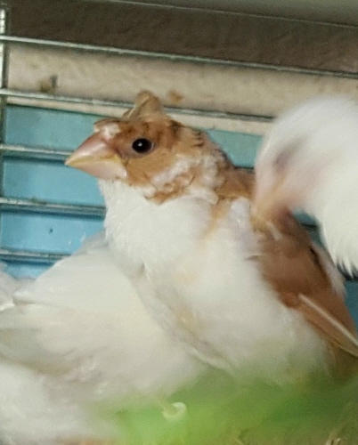 Яша - хохлатый (2 хохла) пестрый палево-белый самец (без кольца):