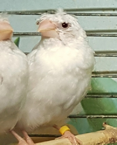Тэфи - хохлатая белая самка (желтое кольцо на левой лапке):