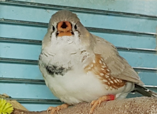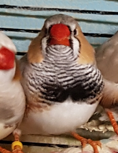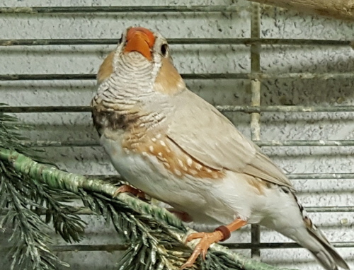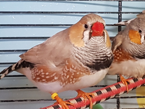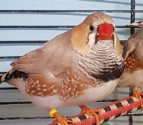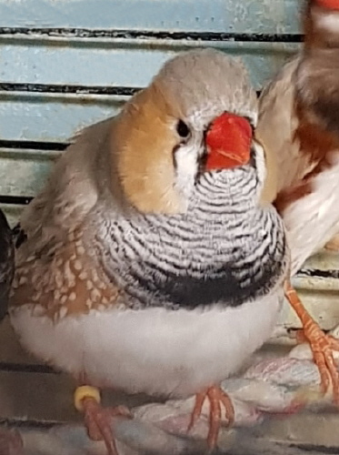Роланд - крупный самец лайтбэк щепный на черногрудых и оранжевогрудых (красное кольцо на правой лапке):