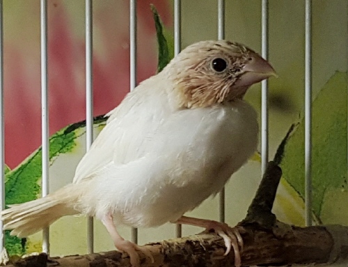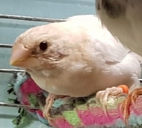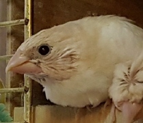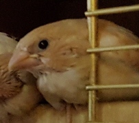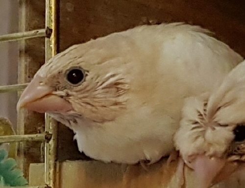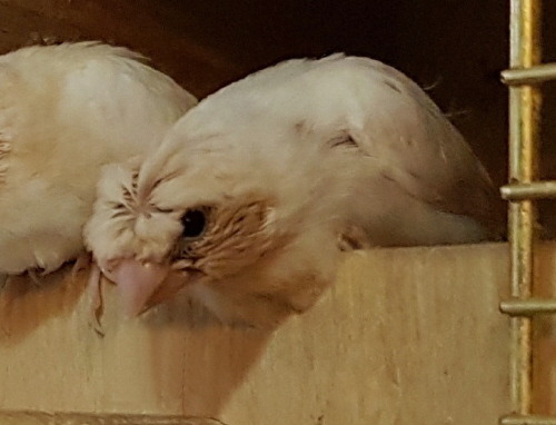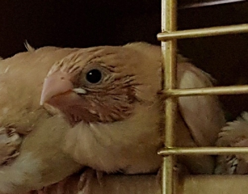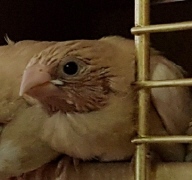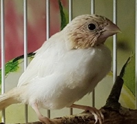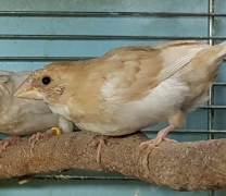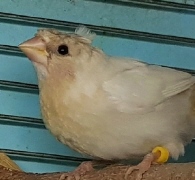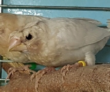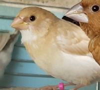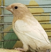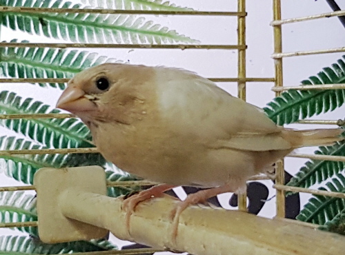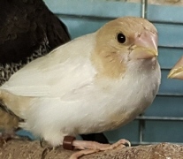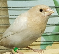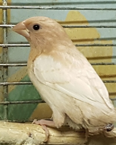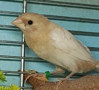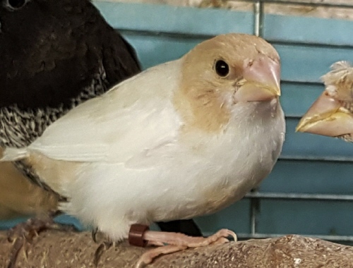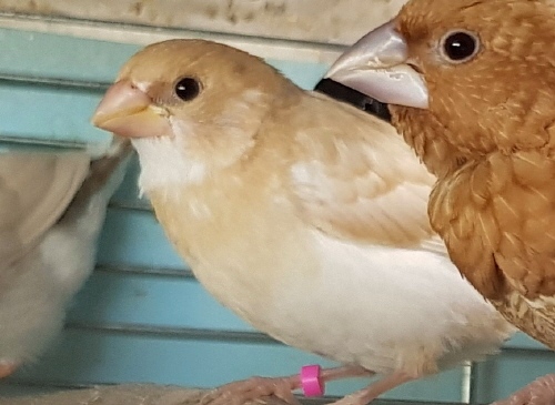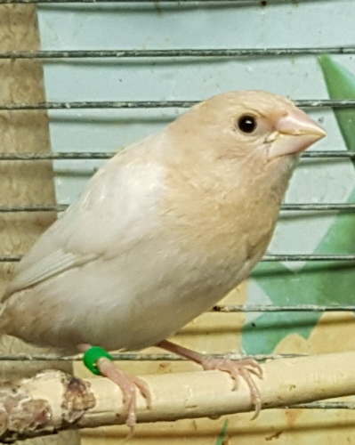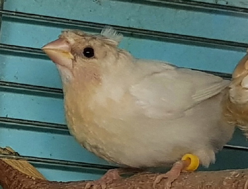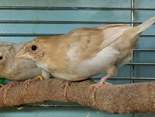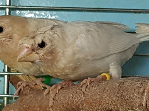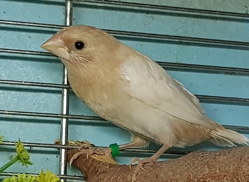 Банни - светлокрылая палевая самка (желтое кольцо на левой лапке):