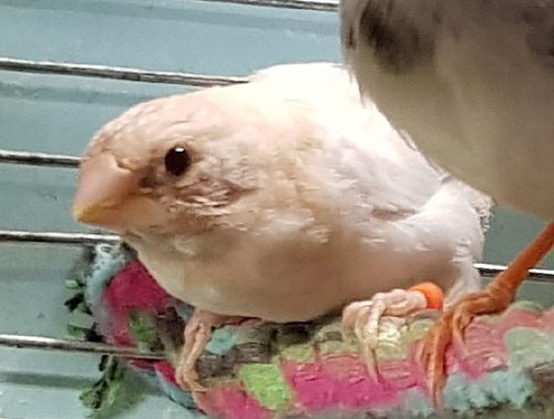 Бэби - светлокрылая палевая самка (оранжевое кольцо на правой лапке):