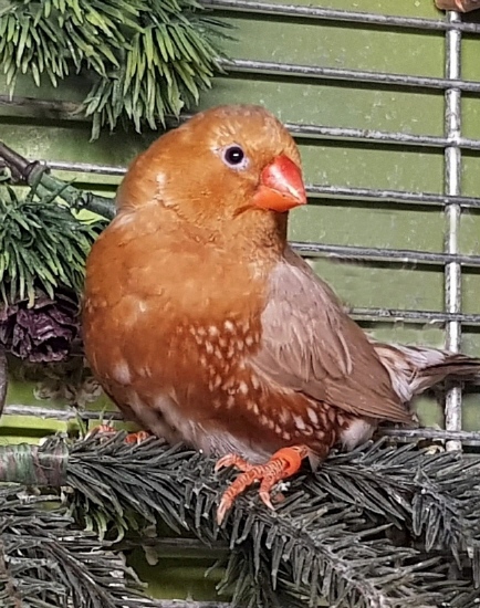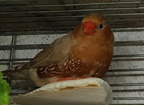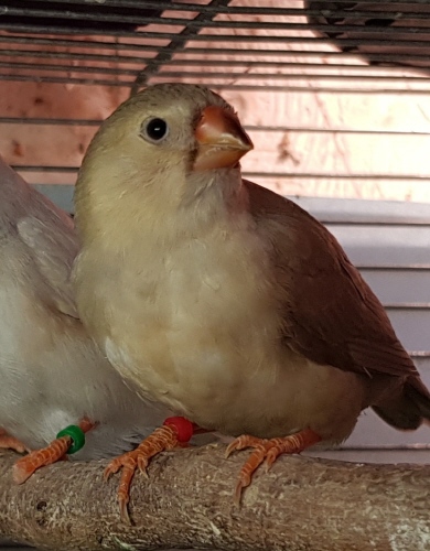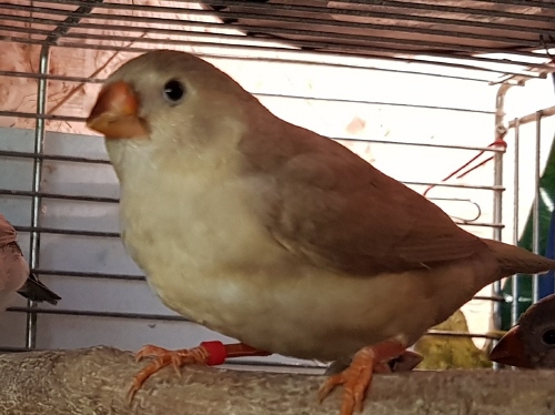 Пинки - очень крупная черногрудая оранжевогрудая палевая самка (оранжевое кольцо на левой лапке):