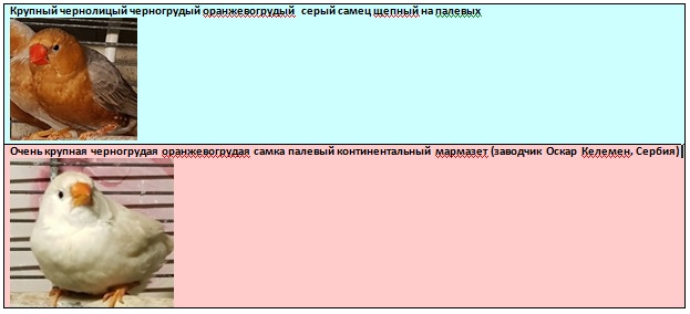 Родословная птенцов: