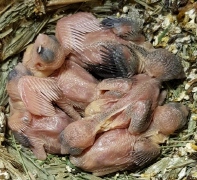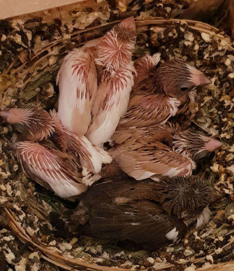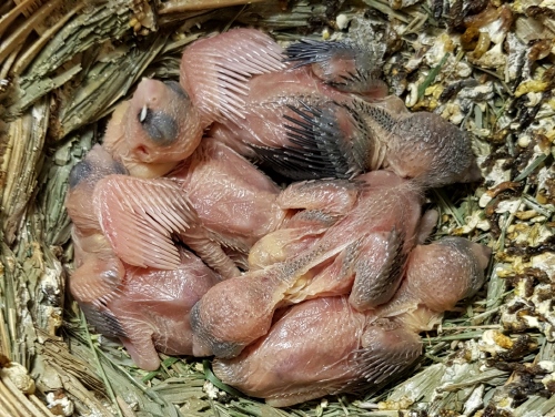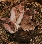 Гнездование №233: Птенцы от пары Ландыш и Горошинка, рождение 25.01.20 (5 птенцов)