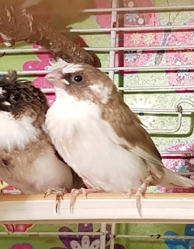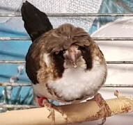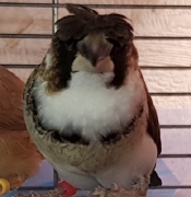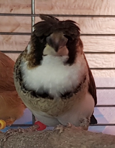 Кокоша - хохлатая (2 хохла) пестрая шоколадно-белая самка (без кольца):