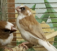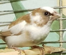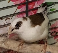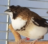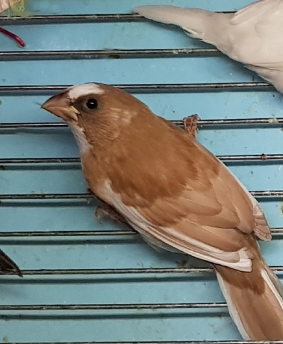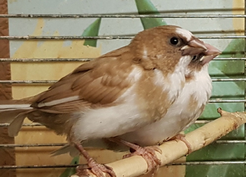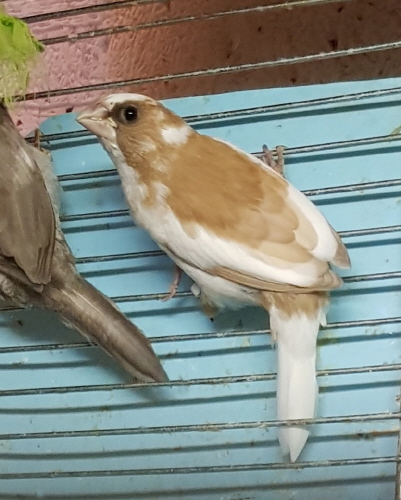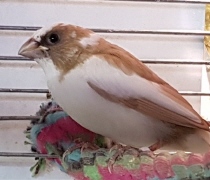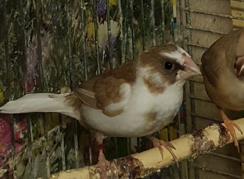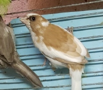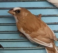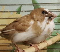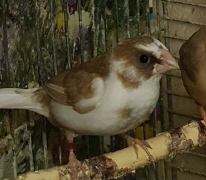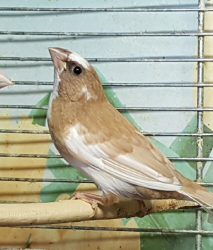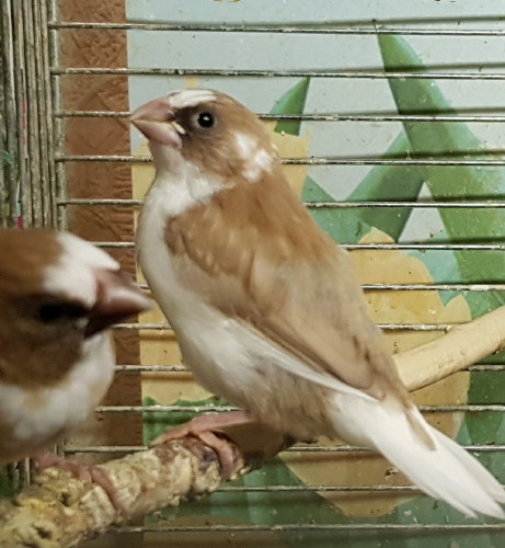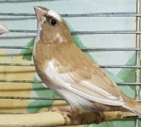Лем - пестрый осветленный бело-каштановый самец (коричневое кольцо на правой лапке):