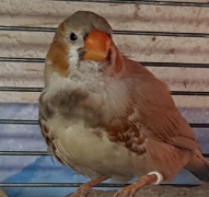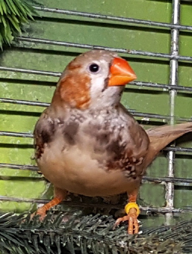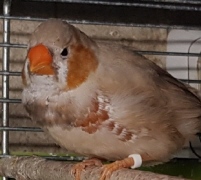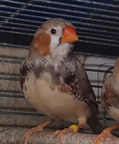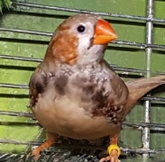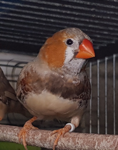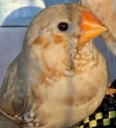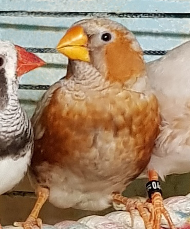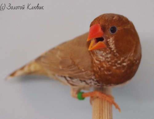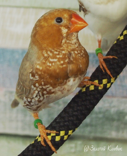 Сэнди - крупный черногрудый оранжевогрудый палевый самец щепный на изабель и желтоклювых (зеленое кольцо на левой лапке):