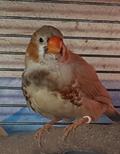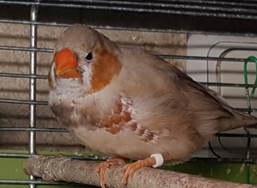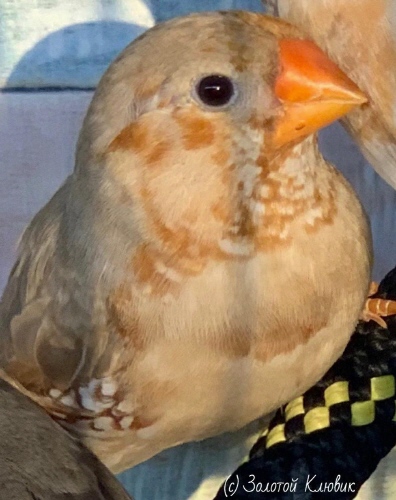 Фрэд - крупный оранжевогрудый палевый самец щепный на изабель, черногрудых и желтоклювых (белое кольцо на левой лапке):