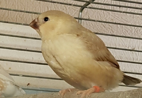 Искра - крупная черногрудая оранжевогрудая палевая самка щепная на изабель (оранжевое кольцо на левой лапке):