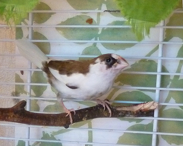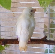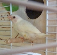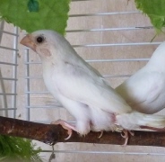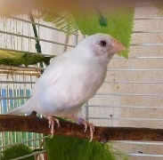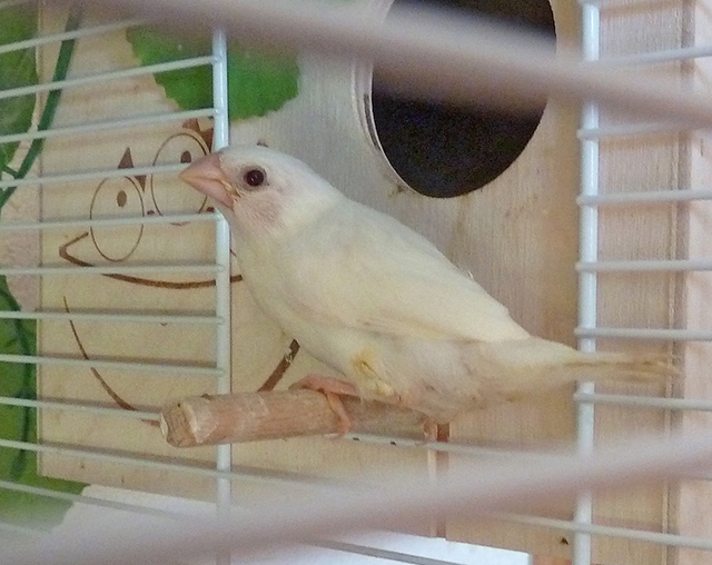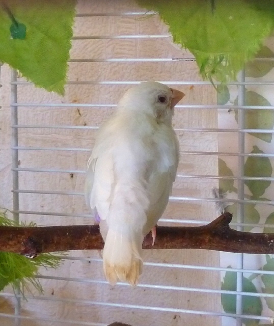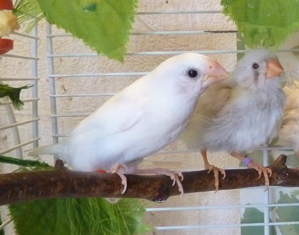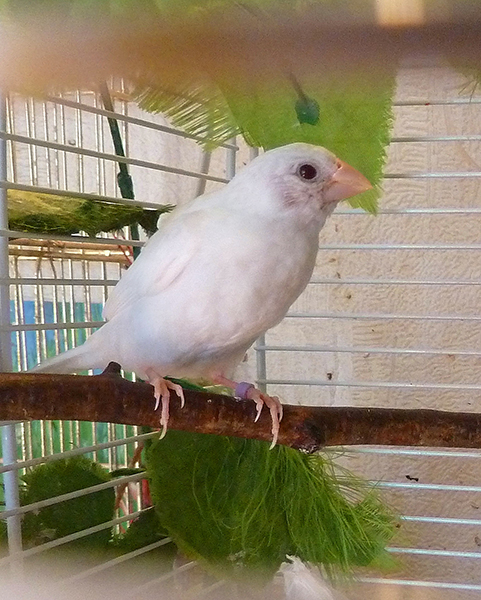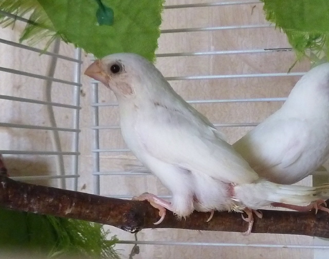 Элоя - белая самка с черными глазами (оранжевое кольцо на правой лапке):