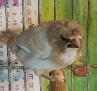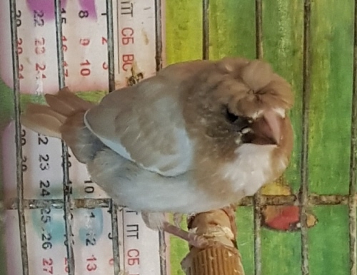 Бон - хохлатый (2 хохла) пестрый бело-каштановый осветленный самец (без кольца):