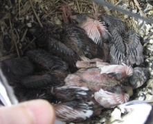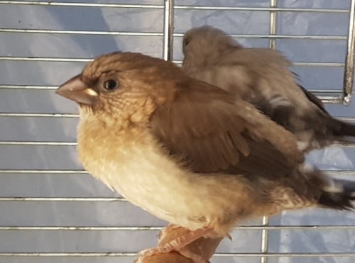 Гнездование №271-1: Птенцы от пары жемчужно-серый самец и жемчужно-серая самка, рождение 29.08.20 (2 птенца)