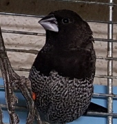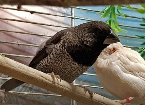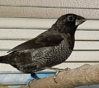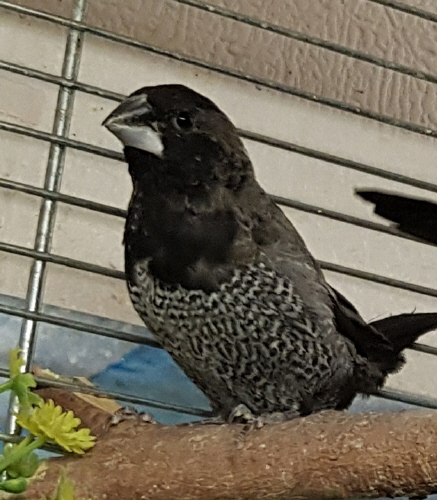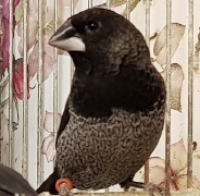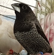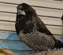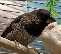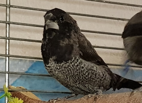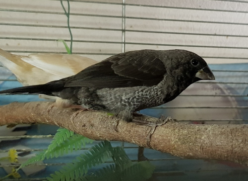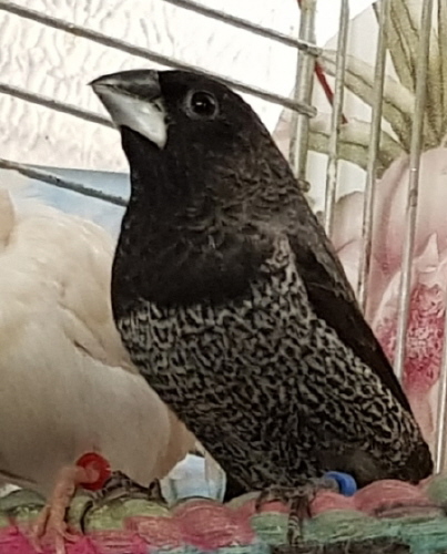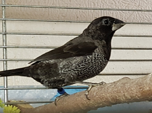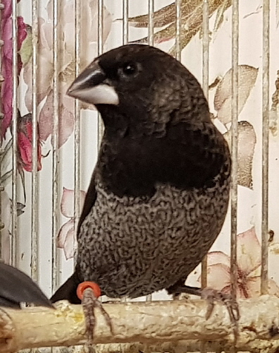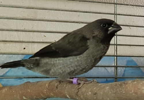 Кинг - крупный черно-серый самец щепный на черных (сиреневое кольцо на правой лапке):