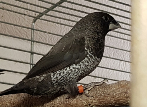 Джози - крупный черно-серый самец щепный на черных (оранжевое кольцо на правой лапке):