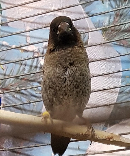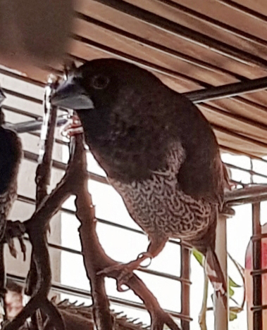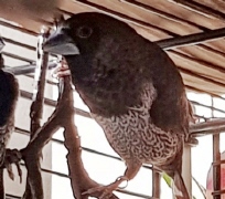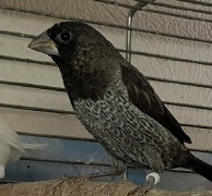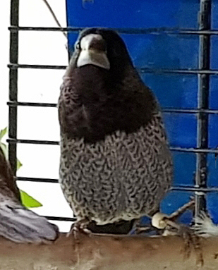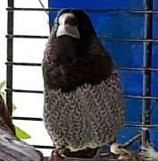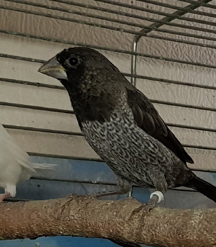 Келли - крупный черно-серый самец щепный на жемчужных (белое кольцо на левой лапке):