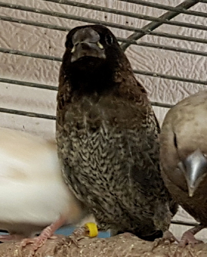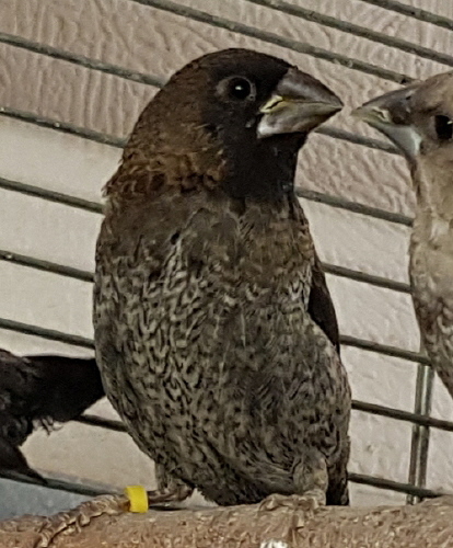 Саймон - крупный черно-коричневый самец щепный на жемчужных (желтое кольцо на правой лапке):