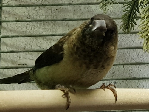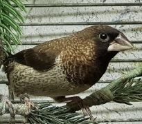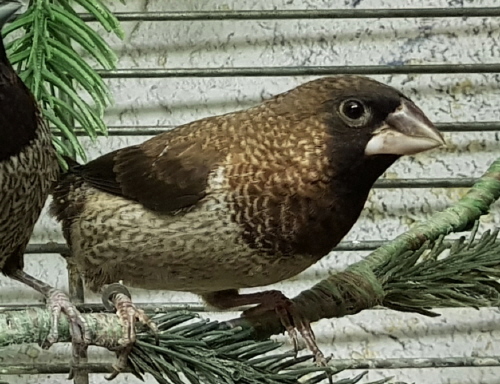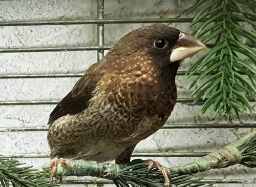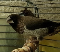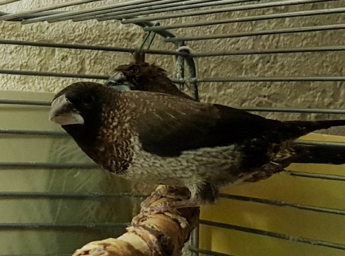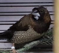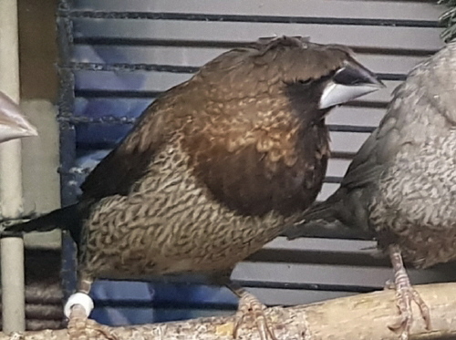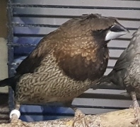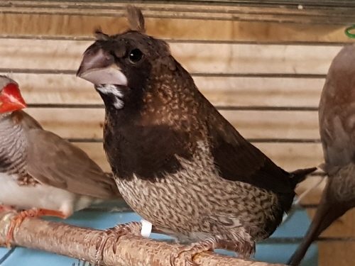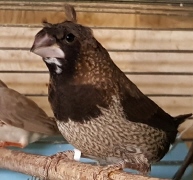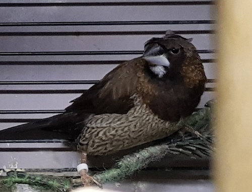 Архип - крупный хохлатый черно-коричневый самец щепный на жемчужных (белое кольцо на правой лапке):