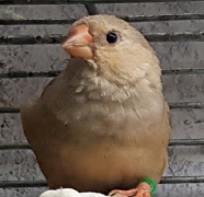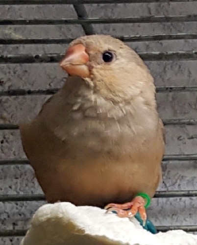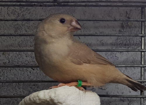 Идалия - крупная чернолицая черногрудая оранжевогрудая палевая самка (зеленое кольцо на левой лапке):
