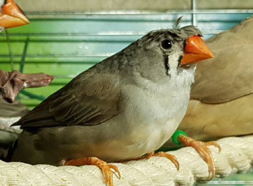 Чернолицый серый самец щепный на желтоклювых (зеленое кольцо на правой лапке):