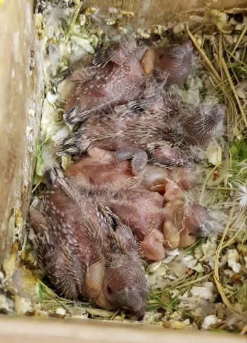 Гнездование №289: Птенцы от пары Дин и Оника, рождение 11.04.21 (4 птенца)